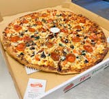 Pepperoni, Italian sausage, mushrooms, red onions, black olives, green peppers, pizza sauce & mozzarella cheese.